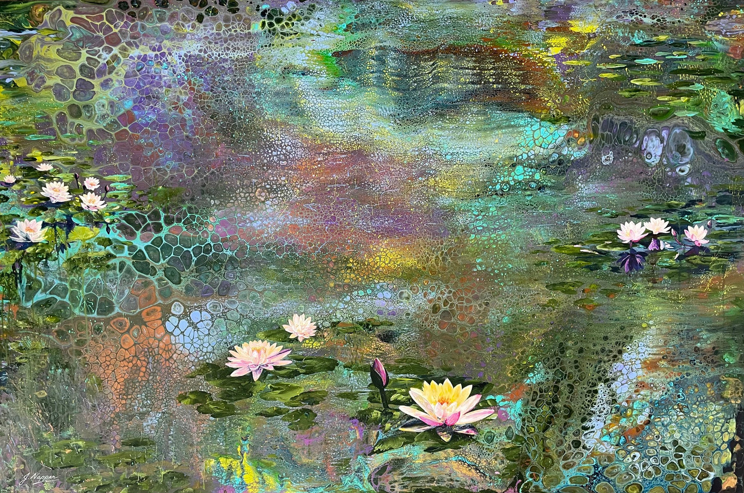 In Eye on Nature, contemporary artist Janice Napper celebrates the vitality and rhythm of the natural world — especially her homeland New Zealand. Through her distinctive fluid painting style and mastery of resin she captures the beauty and essence of nature in motion: cascading waterfalls, birds suspended mid-flight, and delicate blooms that shimmer with colour and energy.